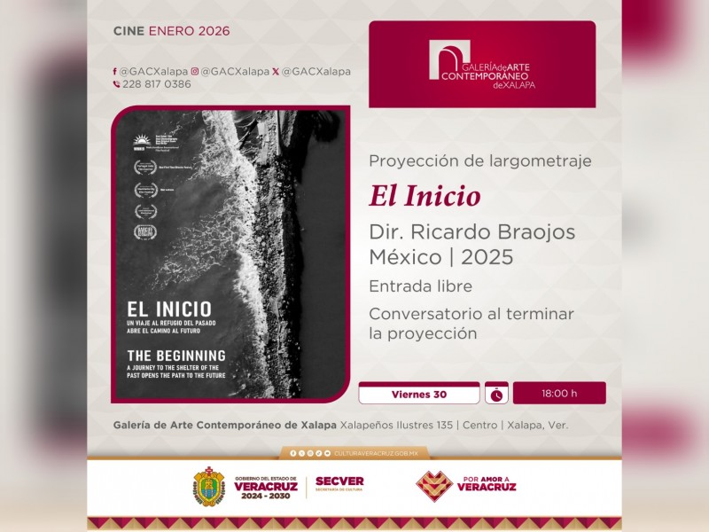 La Secretaría de Cultura de Veracruz (SECVER) invita a la proyección y conversatorio del largometraje veracruzano El inicio, que sqe llevará a cabo el viernes 30 de enero, a las 18:00 horas, en el Auditorio de la Galería de Arte Contemporáneo de Xalapa (GACX). La entrada es libre.