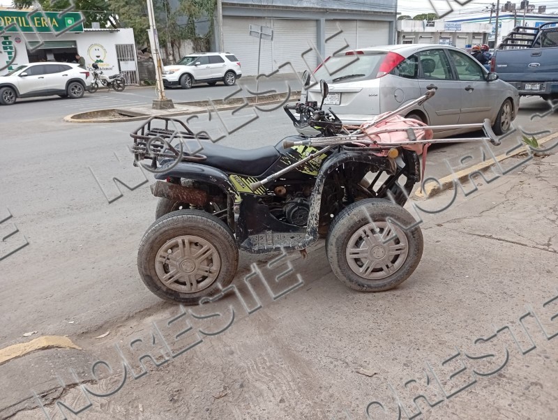 En este lugar un automóvil no identificado colisionó contra una cuatrimoto Italika ATV 150, de colores negro y verde, la cual era manejada oie una mujer de la tercera edad.