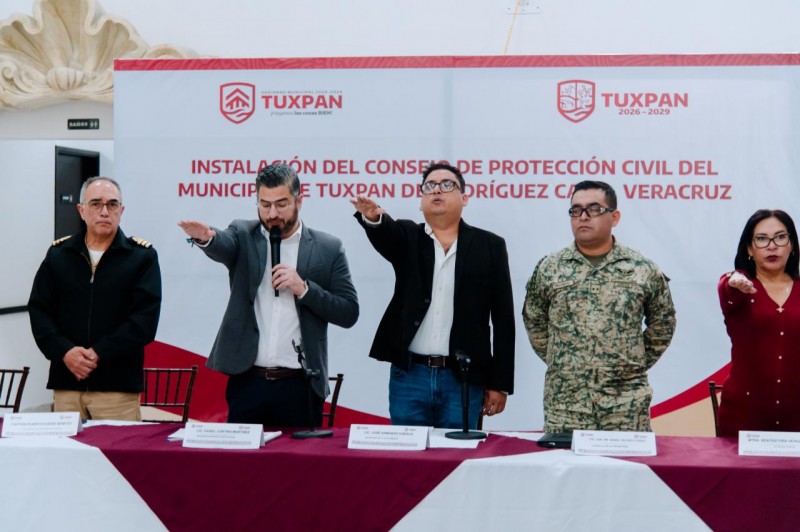 Este día se llevó a cabo la toma de protesta de las y los integrantes del Consejo de Protección Civil de Tuxpan, quedando formalmente instalado este órgano fundamental para la prevención, coordinación y atención de riesgos y desastres.