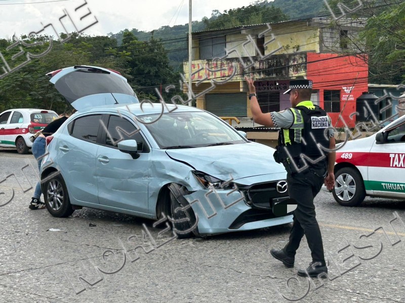 Un accidente automovilístico se registró en la carretera federal México-Tuxpan, a la altura del kilómetro 6, en el sector del ejido Lázaro Cárdenas en Tihuatlán, Veracruz. El conductor de una camioneta particular intentó incorporarse a la carretera desde la calle Morelos sin precaución, lo que provocó un corte de circulación a la conductora de un vehículo Mazda de color azul.
