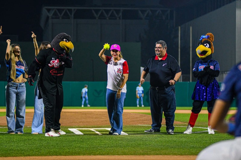 La funcionaria federal fue la encargada de lanzar la primera bola del partido que terminaron ganando las oriundas de La Perla Tapatía.