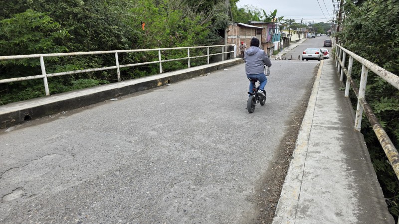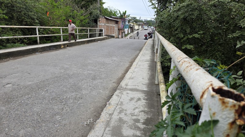 De acuerdo con el estado visible del puente, parte de la estructura se encuentra dañada, con fragmentos que se desprenden, mientras que la carpeta asfáltica registra hundimientos y baches que dificultan el paso de vehículos y representan un riesgo constante, especialmente durante la noche o en temporada de lluvias.