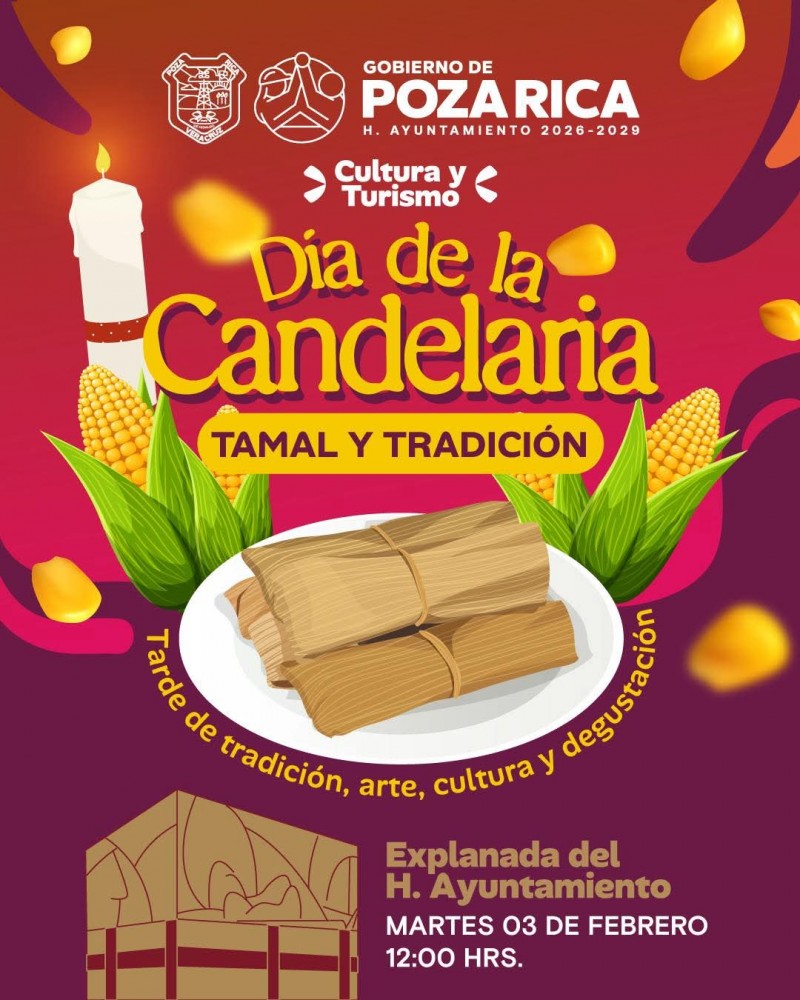 Por instrucciones de la presidenta municipal Adanely Rodríguez Rodríguez, el Gobierno de Poza Rica, a través de la dirección de Cultura y Turismo, anunció la realización del evento “Día de la Candelaria, tamal y tradición”, con el objetivo de promover las costumbres y expresiones culturales del municipio.