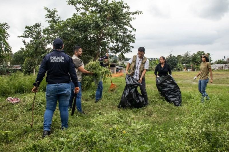 Como parte de esta jornada, elementos de la Policía Municipal, Protección Civil y vecinos del municipio unieron esfuerzos para llevar a cabo labores de limpieza, rehabilitación y mejoramiento en el campo Infonavit Coatzintla, ubicado en la colonia Ampliación Camioneros. Las acciones incluyeron el retiro de maleza y basura, acondicionamiento del área y recuperación de espacios destinados al deporte y la recreación.
