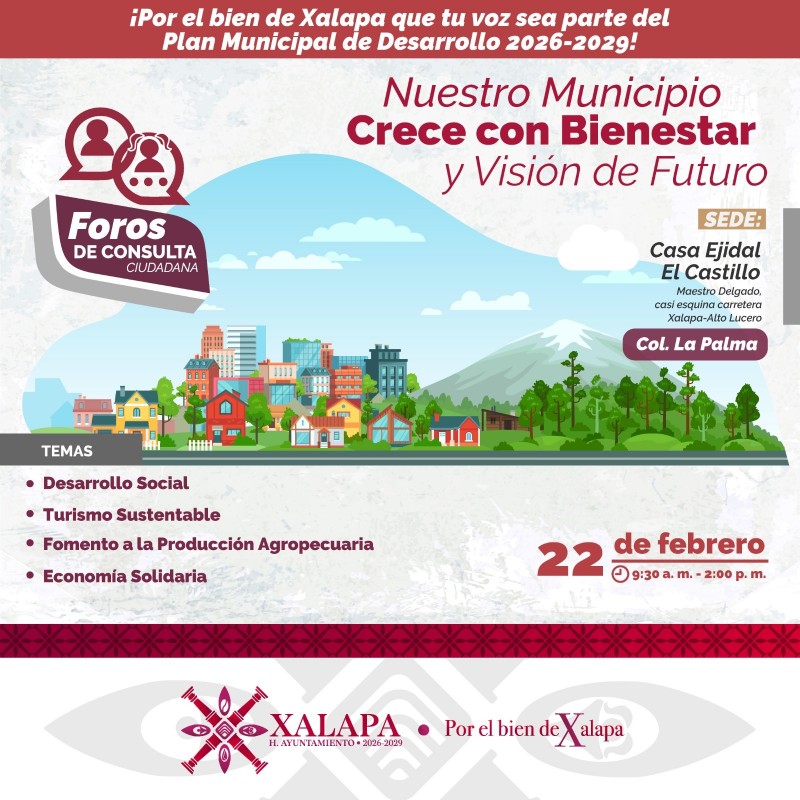 Con el propósito de contar con un Plan Municipal de Desarrollo (PMD) que atienda las principales necesidades de la población y considere las propuestas de la sociedad, el próximo sábado 7 de febrero inician los foros de consulta para la elaboración del PMD 2026-2029.