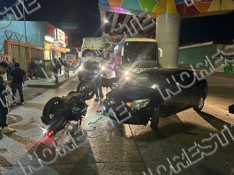 Un aparatoso accidente de tránsito se registró este martes en el Boulevard Lázaro Cárdenas, a la altura de la zona centro de la ciudad, dejando como saldo daños materiales considerables y un motociclista con lesiones menores.