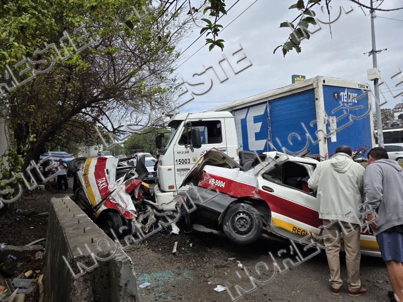 En el percance se vieron implicados un tráiler cervecero, una camioneta Chevrolet y dos unidades de taxi, las cuales resultaron con daños tras el impacto.