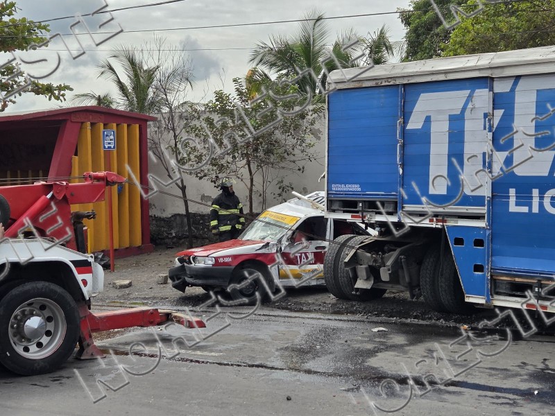 De acuerdo con información preliminar, el conductor de la camioneta presuntamente intentó realizar una maniobra incorrecta al incorporarse con la luz ámbar, lo que provocó que fuera impactado por el tráiler. Tras el golpe, la unidad perdió el control y terminó colisionando contra los taxis.
