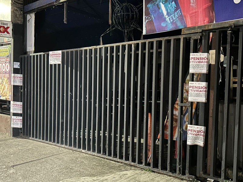 El establecimiento se ubica sobre la avenida 20 de Noviembre, casi esquina con la calle 18, donde personal autorizado colocó sellos de suspensión de actividades, así como avisos oficiales de cierre.