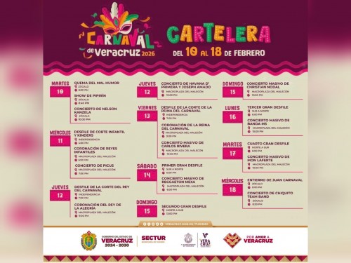 Asimismo, se desarrollarán actividades tradicionales como la Quema del Mal Humor, desfiles infantiles, coronaciones de la corte real y los recorridos sobre el bulevar, así como el cierre con el entierro de Juan Carnaval, expresiones que forman parte del patrimonio cultural y fortalecen la identidad veracruzana.