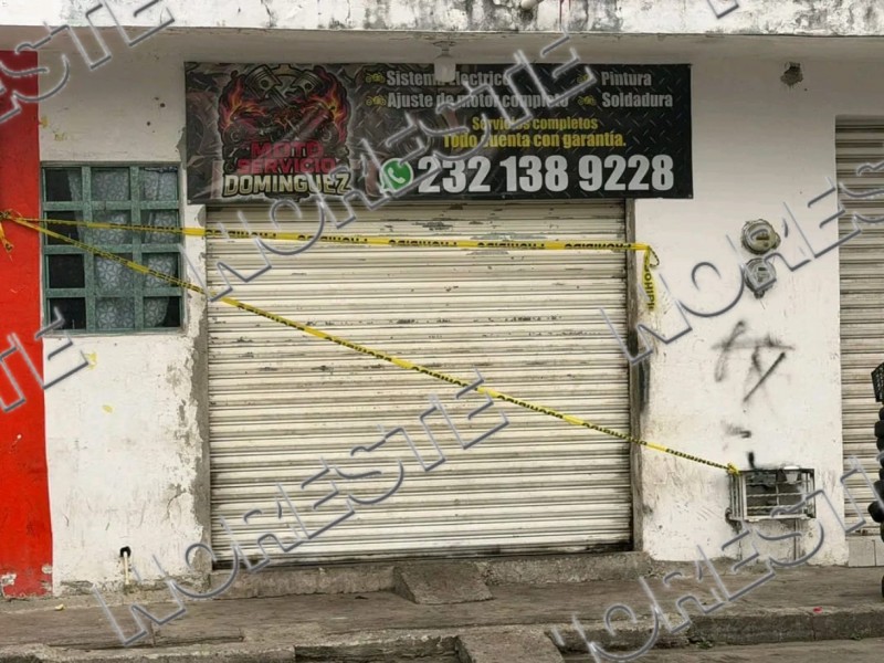 El perímetro fue acordonado mientras agentes ministeriales inspeccionaban el establecimiento identificado como “Moto Servicios Domínguez”.