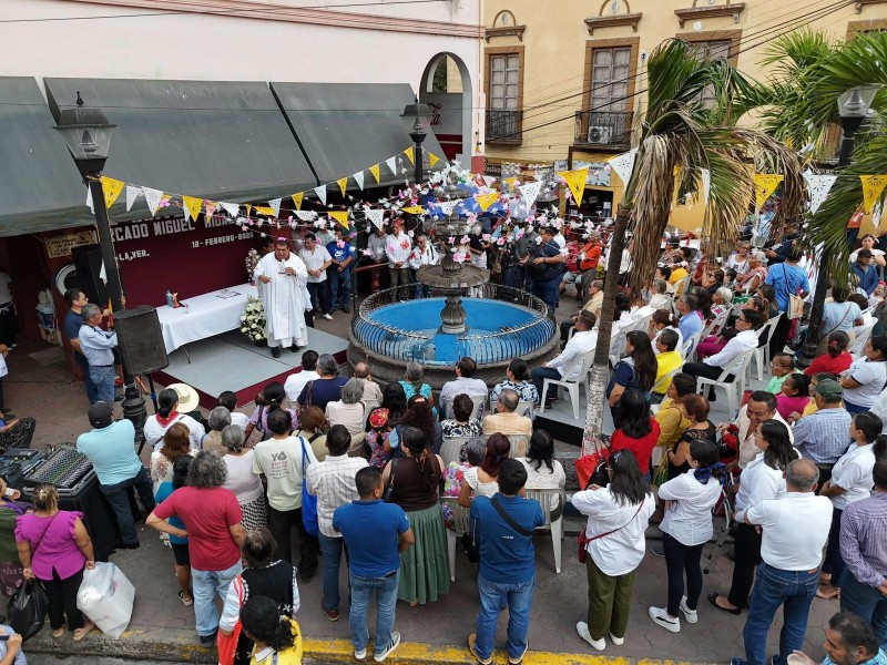 Como parte de las actividades, autoridades municipales y comerciantes participaron en la Misa de Acción de Gracias, oficiada por el sacerdote Miguel Navarro Espinoza, la cual se llevó a cabo en la plazoleta, en un ambiente de respeto y reflexión por la historia del mercado.