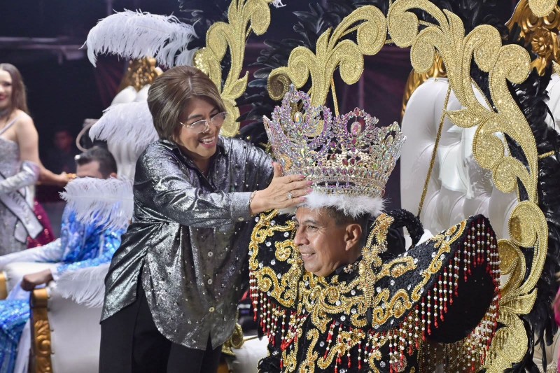 Ambas impusieron la corona al Rey de la Alegría, Bernardino Jiménez Revueltas, Yayo I; así como a Princeso I, Mario Ucha, y a Princeso II, Jorge Yair Torres Espejo, quienes asumieron oficialmente su papel como máximos representantes del espíritu festivo de esta edición 102 del Carnaval.