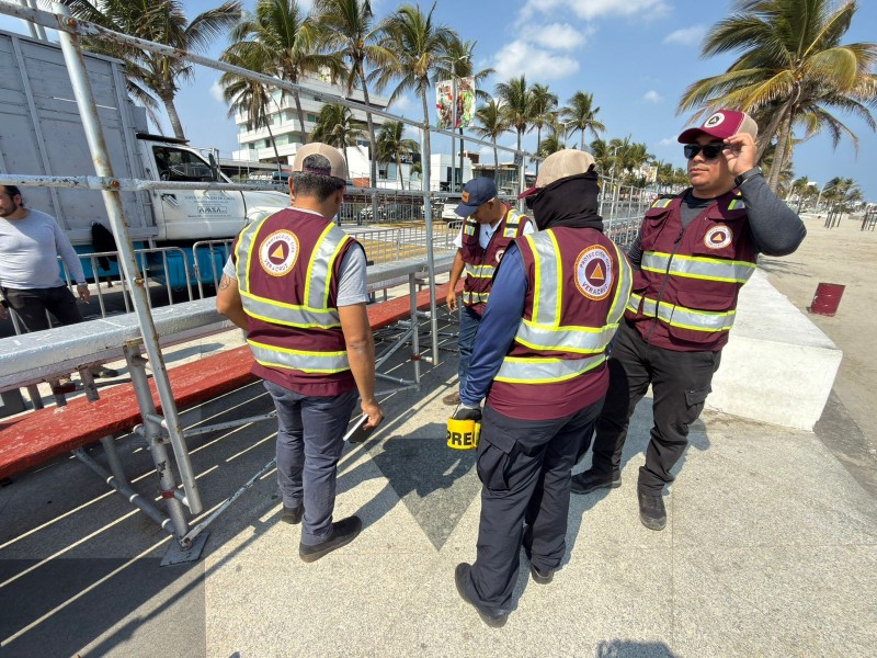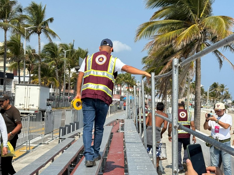 Personal de Protección Civil del municipio de Veracruz realizó una inspección de la colocación de las gradas en el bulevar para el Carnaval Veracruz 2026 durante la mañana de este viernes 13 de febrero.