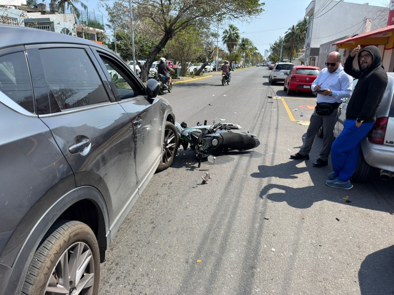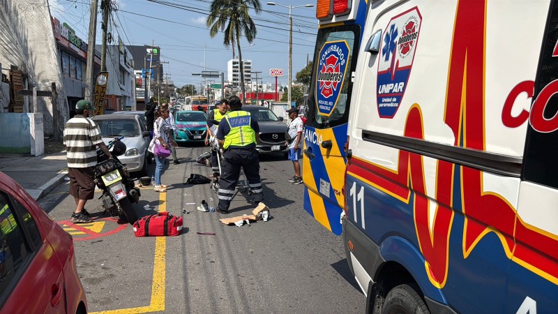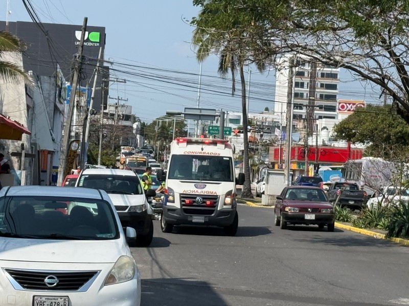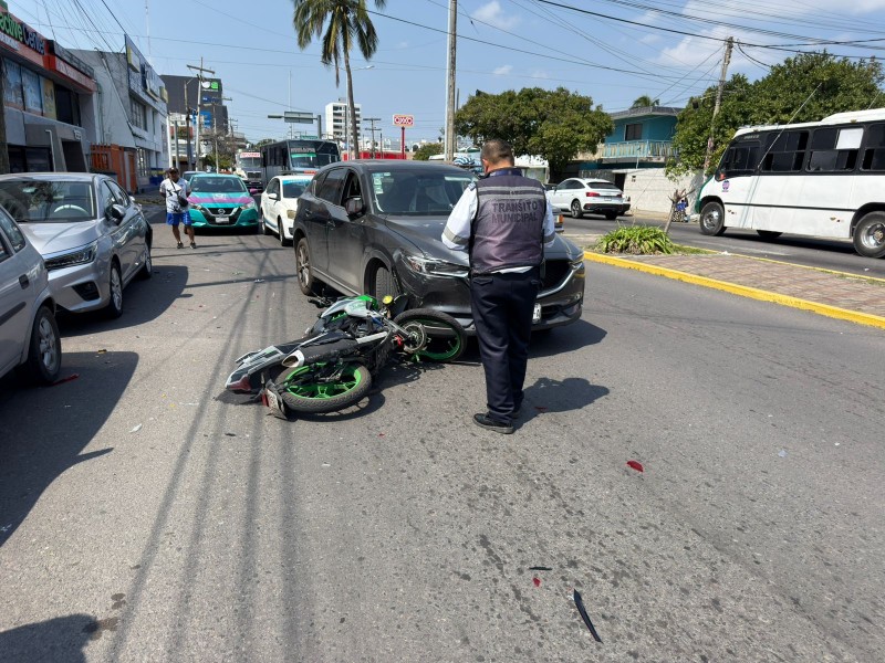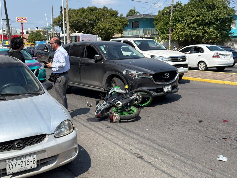 La mañana de este viernes 13 de febrero, un motociclista sufrió un fuerte accidente al ser impactado por una camioneta cuando ambos transitaban por la avenida Juan Pablo II del municipio de Boca del Río.