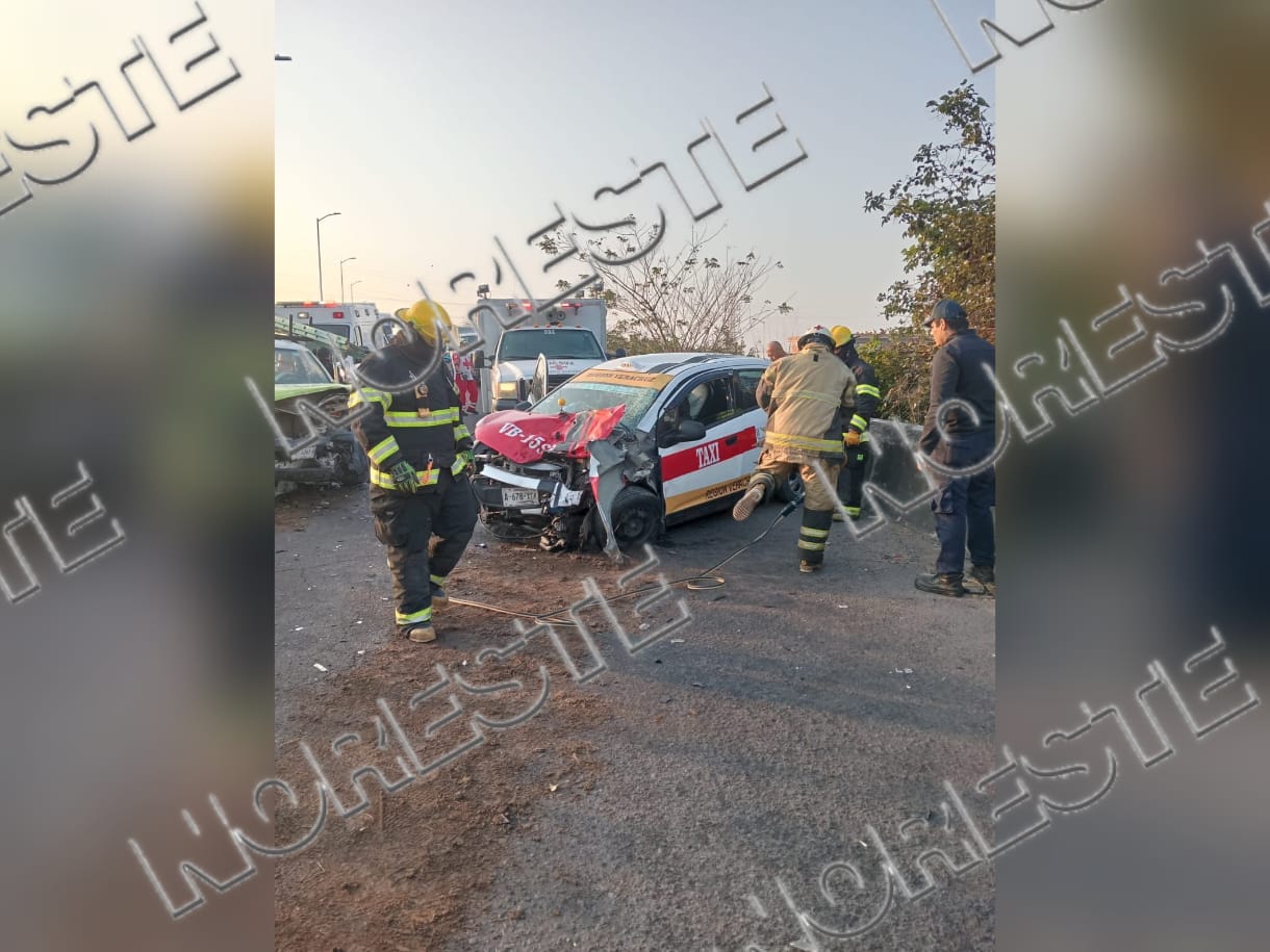 Tras el impacto, el conductor del taxi perdió la vida en el lugar, mientras que una mujer resultó herida y fue atendida por paramédicos de la Cruz Roja, quienes la trasladaron a un hospital para su valoración.