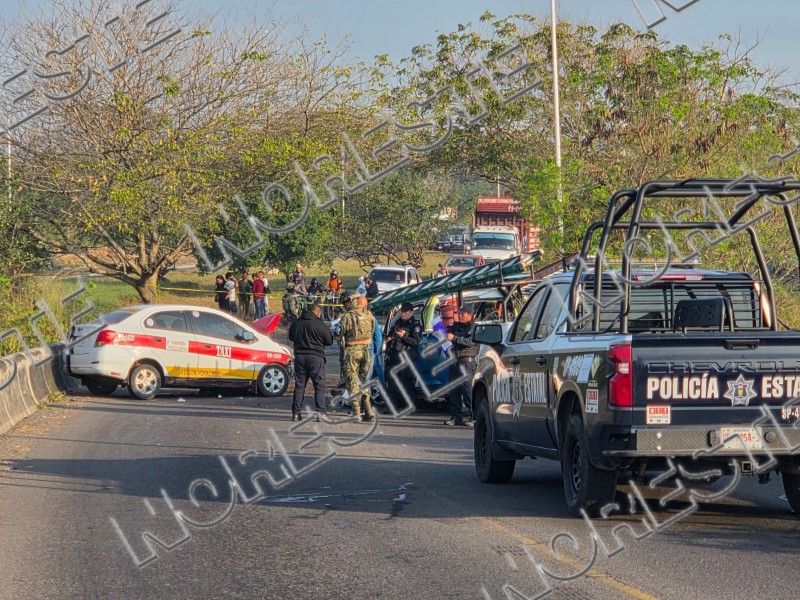 La mañana de este lunes se registró un fuerte accidente sobre el puente de Nuevo Veracruz, donde un taxi y una unidad de una empresa de cable colisionaron de frente, dejando como saldo una persona fallecida y una mujer lesionada.