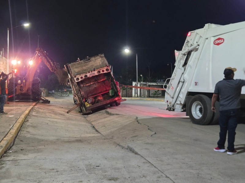 Tras el incidente, personal de la actual administración municipal acudió de inmediato al lugar para atender la emergencia. Trabajadores de distintas áreas realizaron maniobras durante varias horas para liberar el camión recolector, el cual se encontraba cumpliendo con el servicio de recolección de basura en beneficio de los vecinos.