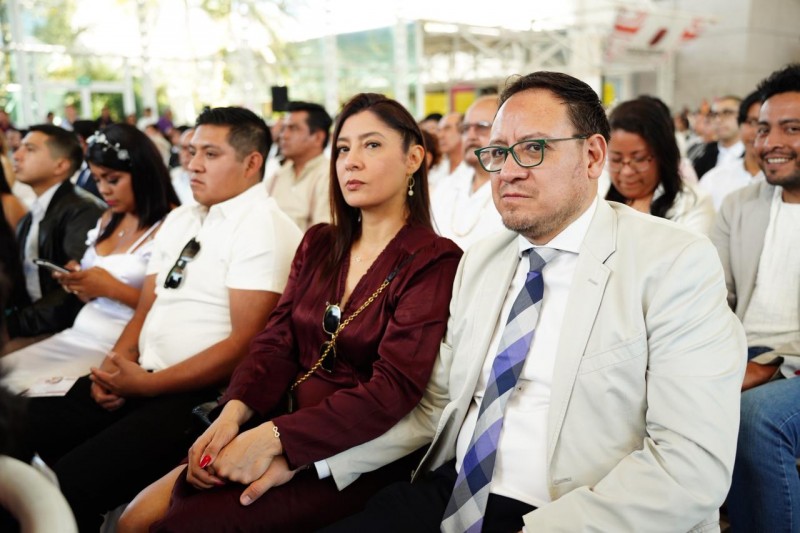 Durante la ceremonia se entregaron de forma simbólica actas a diversas parejas, destacando el matrimonio de Carmen Velasco Morales y Gabriel Reyes Cruz, quienes tenían 67 años de vivir en unión libre; el de María Rafaela Mundo González y José Rafael Dolores Hernández, con 53 años juntos; así como el matrimonio igualitario de Rodrigo Muñoz Vázquez y Ubaldo Martínez Bandala, con 7 años de unión libre.