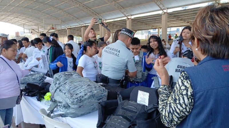 Durante la jornada participaron elementos de distintas corporaciones policiacas, quienes instalaron módulos informativos y realizaron demostraciones sobre medidas de autoprotección, seguridad escolar y prevención del delito.
