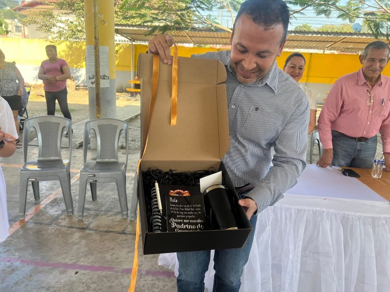 Uno de los momentos más significativos de la jornada fue cuando los alumnos de sexto grado le extendieron la invitación formal para convertirse en padrino de generación. El gesto, lleno de confianza y simbolismo, representa el reconocimiento al trabajo cercano que ha mantenido con la comunidad educativa.