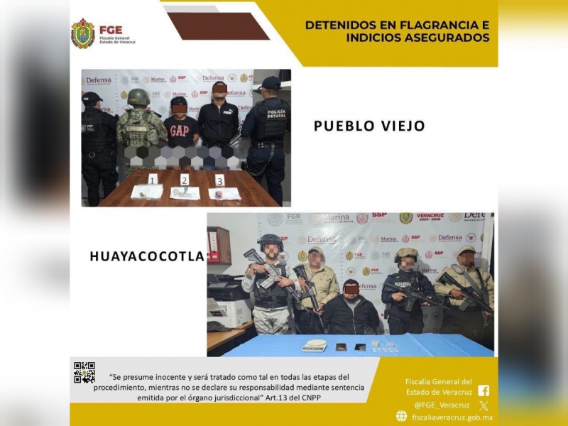 La Fiscalía General del Estado de Veracruz informó que, a través de la Fiscalía Regional con sede en Tantoyuca, se ejecutaron órdenes de cateo en inmuebles ubicados en los municipios de Huayacocotla y Pueblo Viejo, con respaldo de fuerzas federales y estatales.