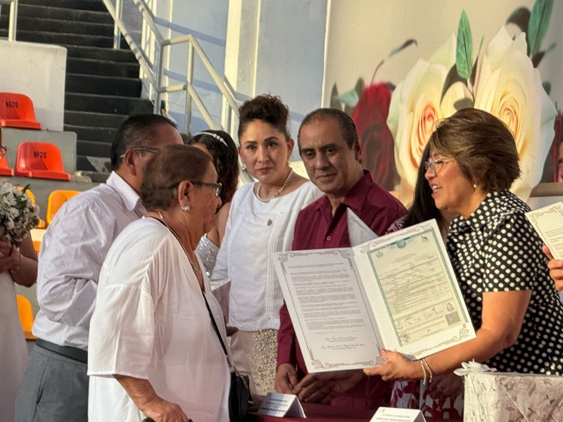 Más de mil parejas contrajeron nupcias este viernes 20 de febrero durante la celebración de bodas colectivas organizada por el ayuntamiento de Veracruz, encabezado por Rosa María Hernández Espejo.