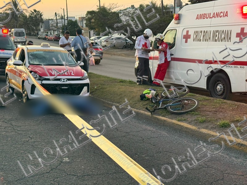 Fue sobre la avenida Ejército Mexicano cuando el taxi VB-4272 impactó a una persona que intentaba cruzar la calle junto con su bicicleta, arrastrándolo varios metros y dejándolo tendido sobre la calle.