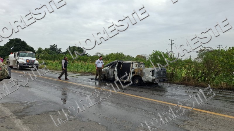 Una unidad blindada destinada al traslado de valores terminó completamente calcinada tras incendiarse cuando circulaba sobre la carretera que enlaza Álamo con Tihuatlán, a la altura del tramo carretero que conecta ambos municipios.