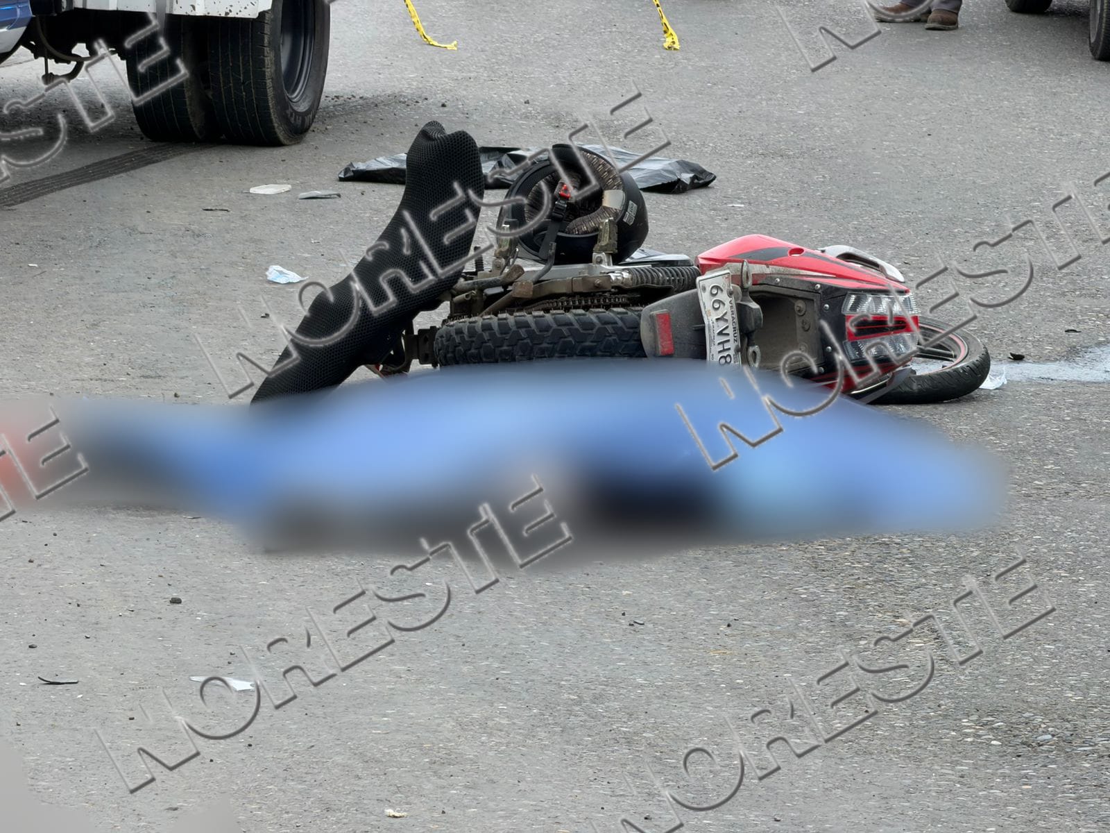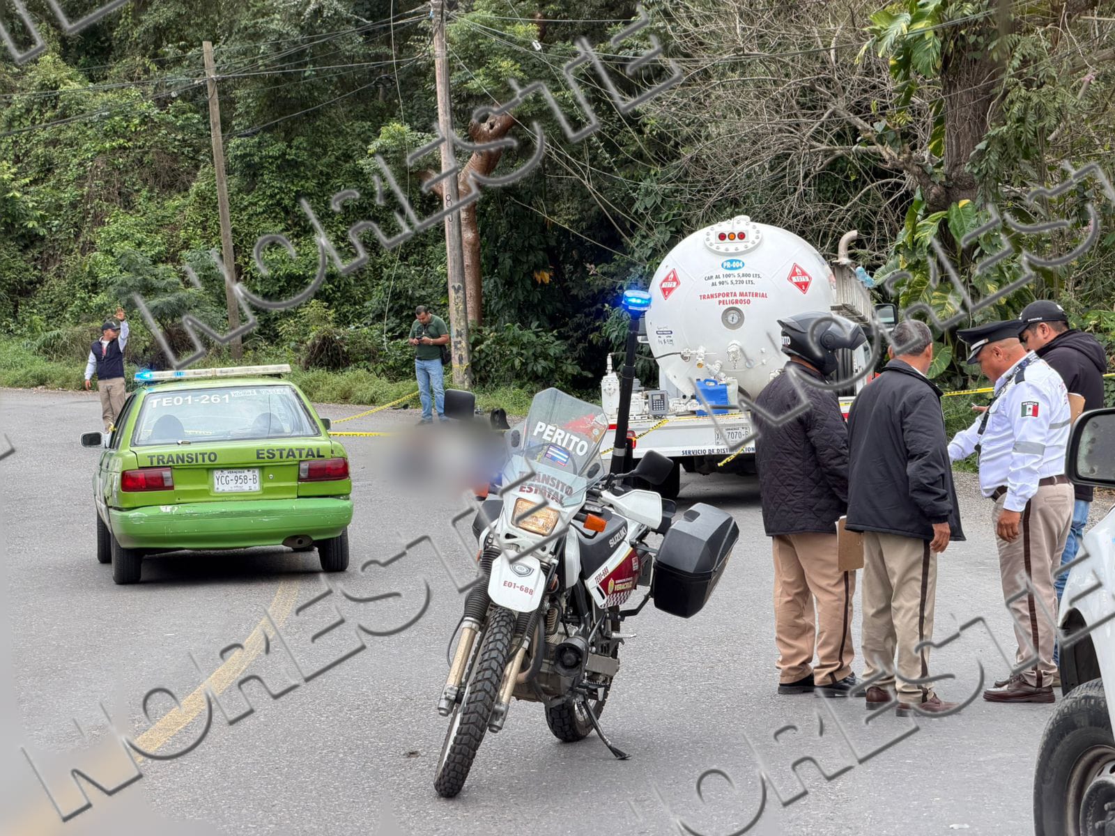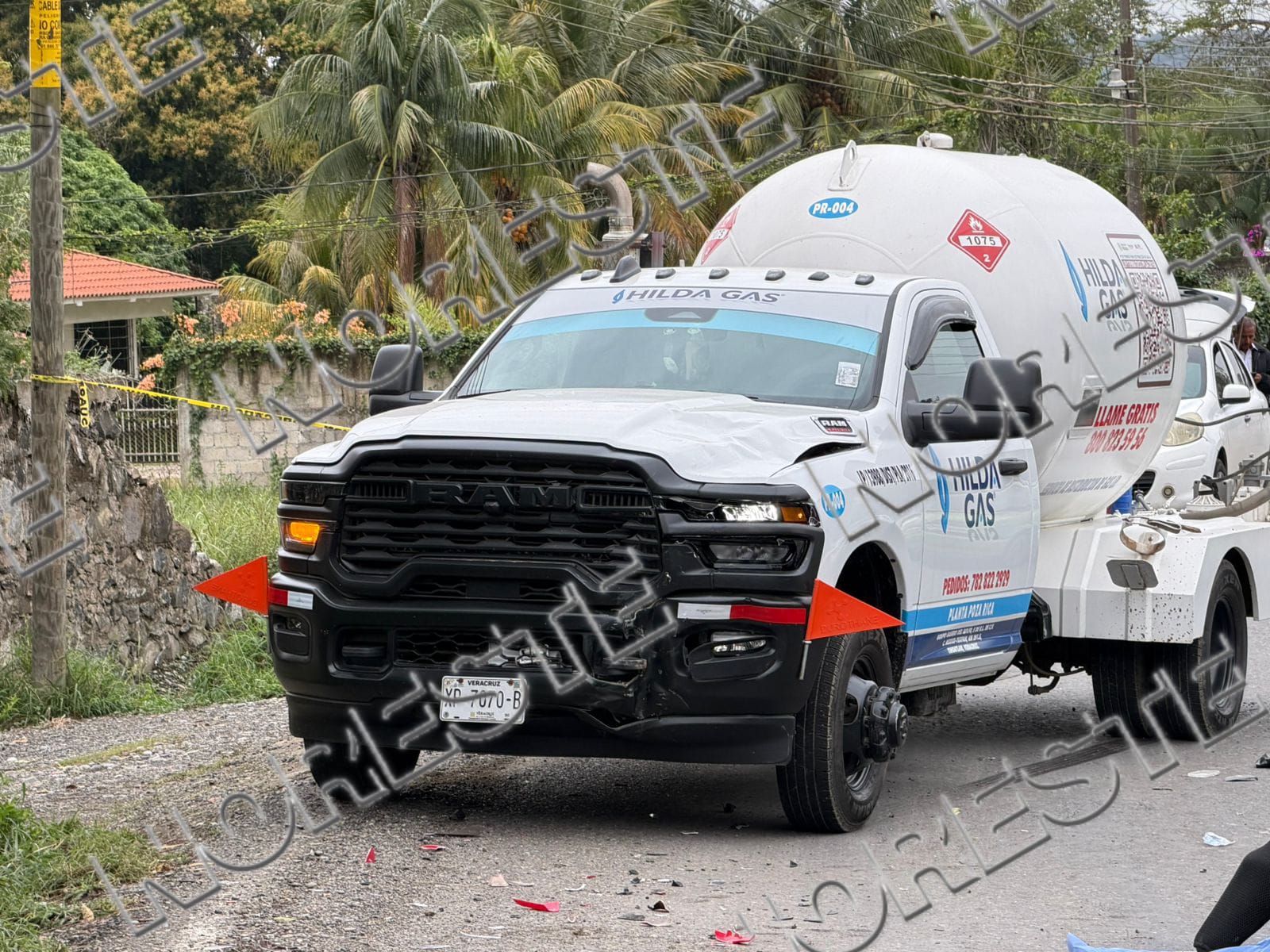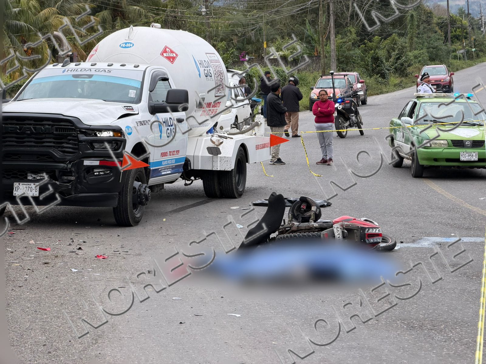 El accidente ocurrió cuando el motociclista, que viajaba en una Italika FT 250 color rojo con su pareja, perdió el control de la unidad en una peligrosa curva y se estrelló de frente con una camioneta RAM 350 que transportaba gas de la empresa Hilda Gas.
