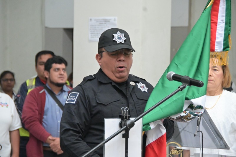 Acompañados de trabajadores municipales, así como alumnos y maestros de instituciones educativas de la ciudad, rindieron homenaje al máximo lábaro patrio del país, que representa la historia e identidad de las y los mexicanos.