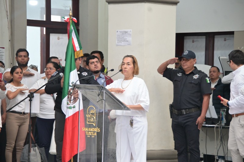 El presidente municipal Rafa Fararoni Magaña y el cuerpo edilicio de San Andrés Tuxtla encabezaron el homenaje por el "Día de la Bandera" en bajos de Palacio Municipal.