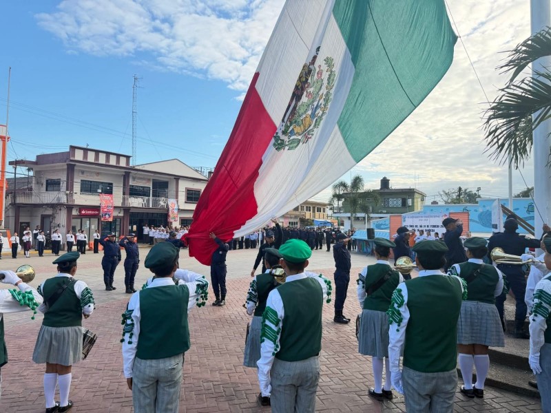 El acto protocolario se desarrolló con la participación destacada de la Escuela Telesecundaria Francisco Villa, cuyos alumnos y docentes organizaron una ceremonia solemne que incluyó honores a la bandera, juramento y mensajes alusivos a la importancia histórica del lábaro patrio como símbolo de unidad, libertad y soberanía nacional.