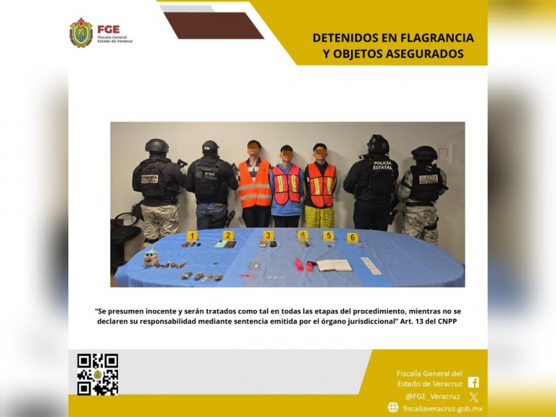 Durante el operativo se detuvieron en flagrancia a José Ángel “N”, Joshua Misael “N” y José Ignacio “N”.