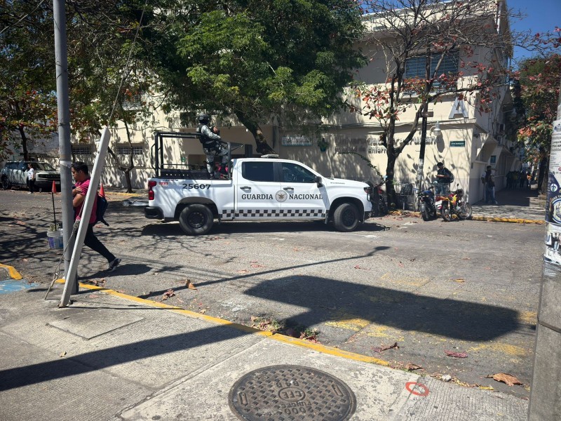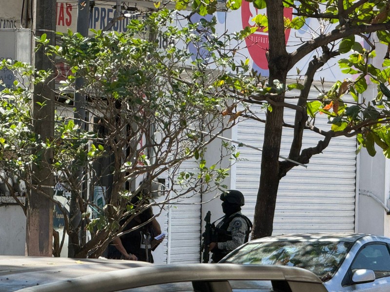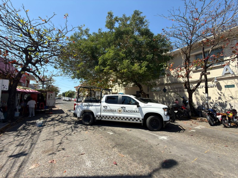 Personal de la Secretaría de la Defensa, de la Guardia Nacional y de la Policía Estatal de desplegaron sobre la calle Juan Enríquez, esquina 20 de noviembre, bloqueando el paso de vehículos.