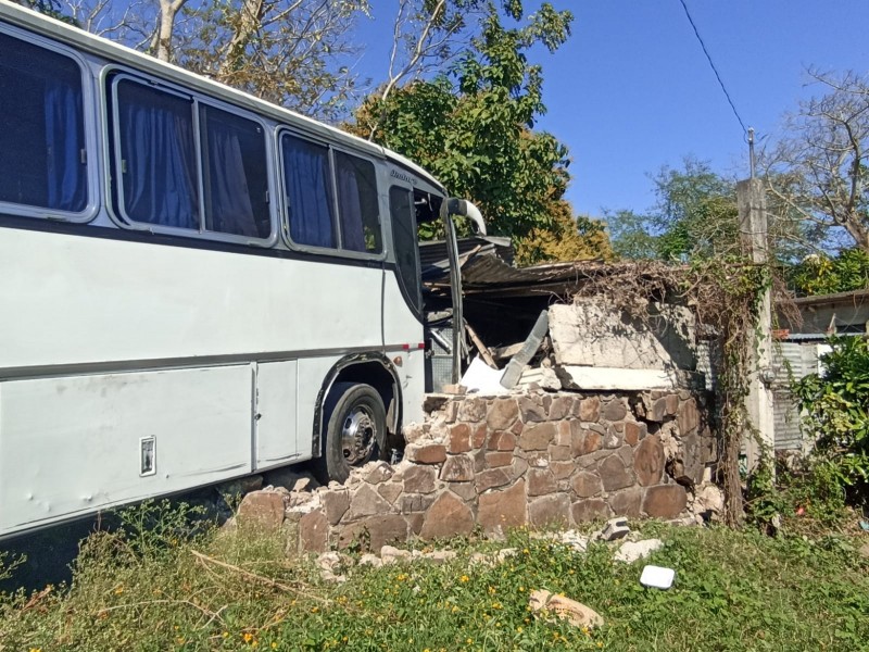 Durante su descenso, el autobús impactó al menos cuatro vehículos estacionados y avanzó como “una mole sin control”, según relataron testigos. La trayectoria concluyó al estrellarse contra una barda de piedra y parte de la vivienda del señor David Esparza, provocando severos daños estructurales.