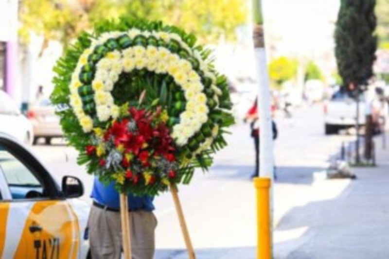 Junto al cuerpo fue llevada una enorme corona de flores y un arreglo floral con la figura de un gallo.