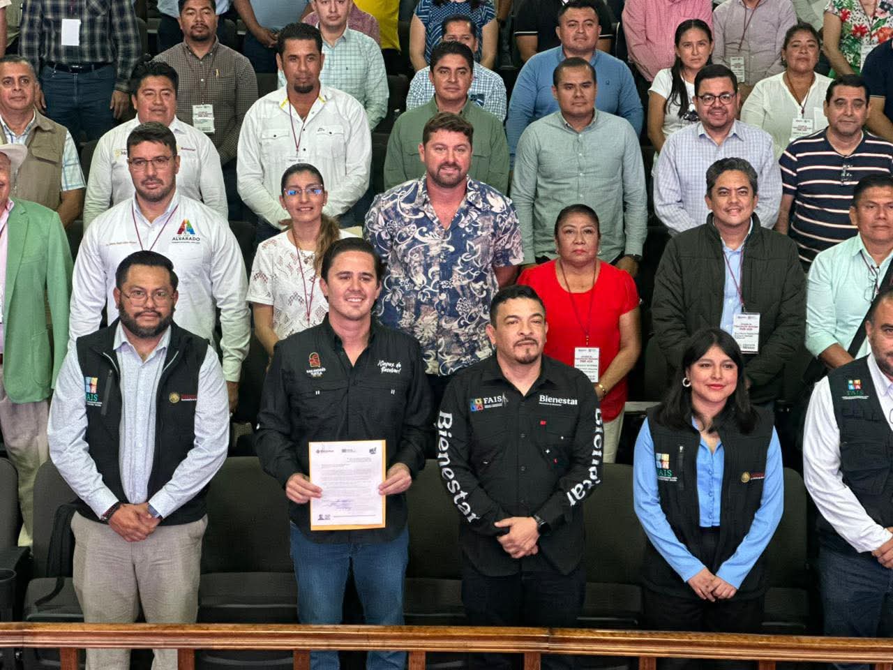 El presidente municipal, Rafa Fararoni Magaña dio la bienvenida al delegado en Veracruz, Juan Javier Gómez Cazarín, así como a alcaldesas y alcaldes de la región que asistieron a la plática informativa sobre el uso correcto de los programas federales.