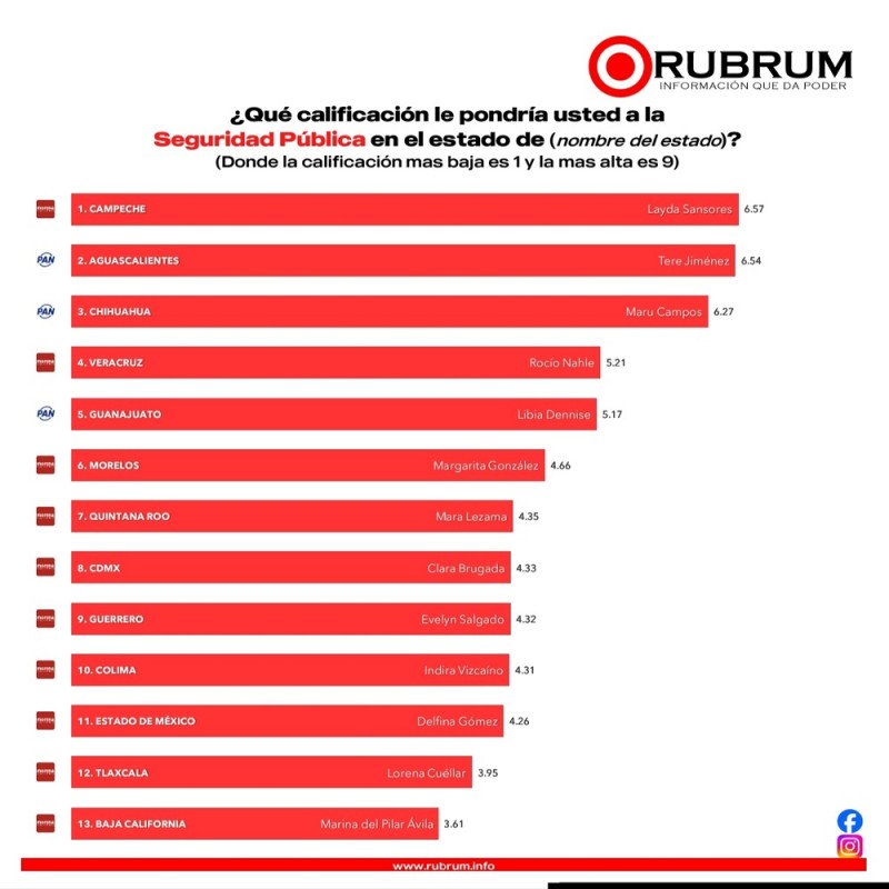 Uno de los puntos más destacados en el informe de Rubrum es la percepción en materia de Seguridad Pública. Con una valoración de 5.21, Veracruz escaló hasta la cuarta posición nacional en este rubro. Este indicador sugiere un incremento en la confianza ciudadana respecto a las estrategias operativas y de prevención implementadas en el territorio estatal.