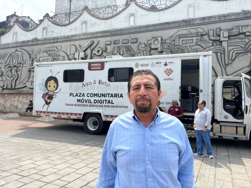 Reyes Prezas explicó que esta plaza móvil funciona como una muestra de los servicios que se ofrecen, y estará instalada únicamente durante el día en este punto; sin embargo, el módulo informativo continuará brindando atención en el parque central Israel C. Téllez, donde las personas interesadas podrán recibir orientación sobre cómo aprender a leer y escribir o concluir su educación básica.