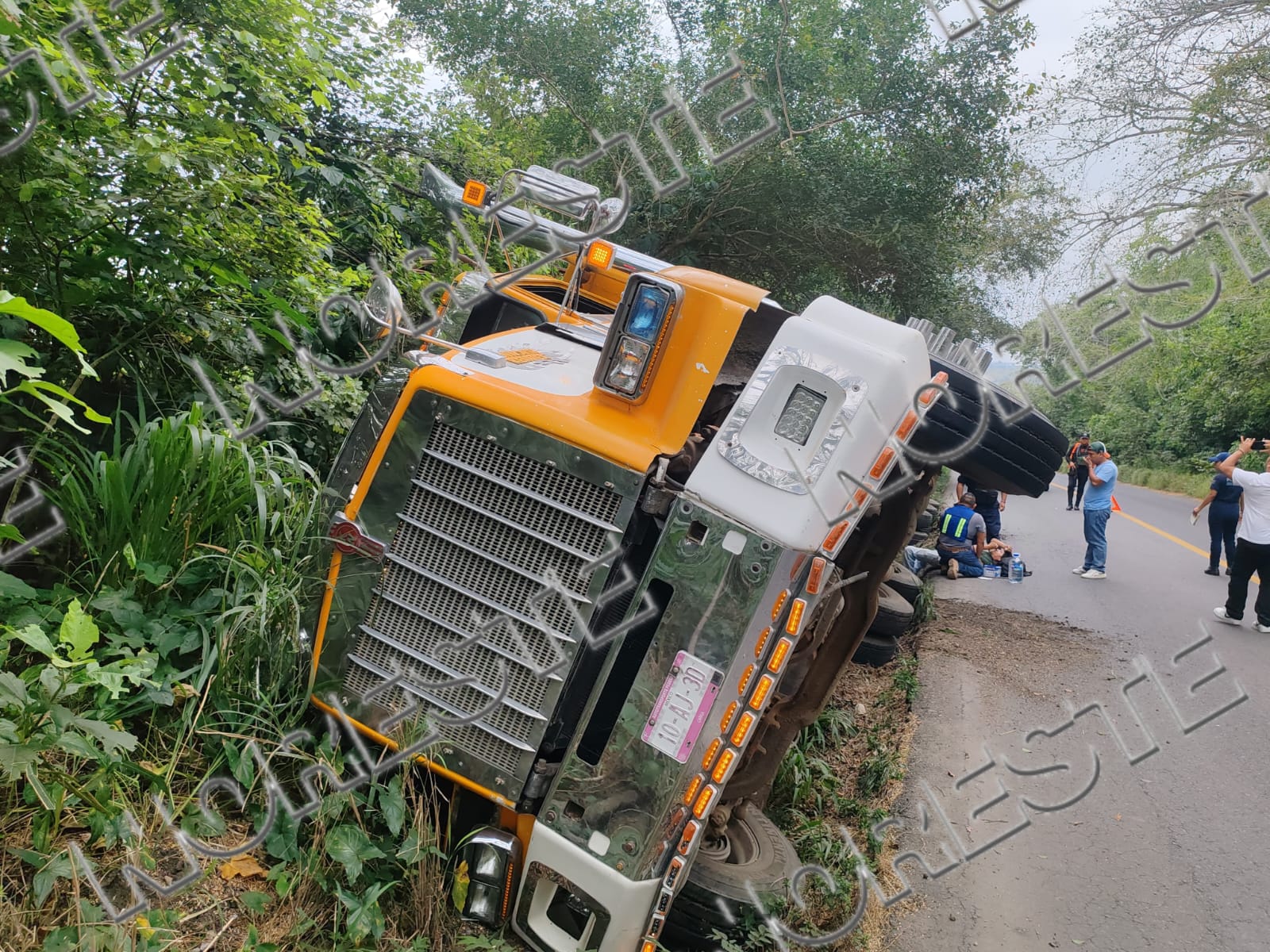 De acuerdo con la información recabada, la pesada unidad transportaba aproximadamente 40 toneladas de naranja tardía cuando, por causas que aún no han sido precisadas, el operador perdió el control del vehículo y terminó volcándose sobre la carpeta asfáltica.