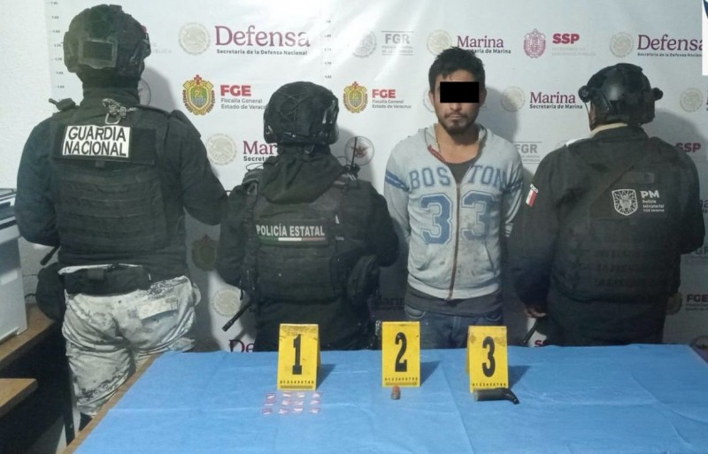 En Coatzacoalcos fue aprehendido un masculino por delitos contra las instituciones de Seguridad Pública y en Tuxpan se aseguró un arma de fuego larga, granadas de 40 mm, una granada de fragmentación y una camioneta sin reporte de robo.