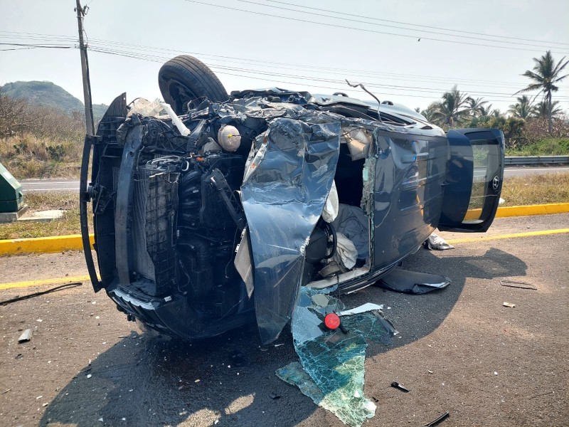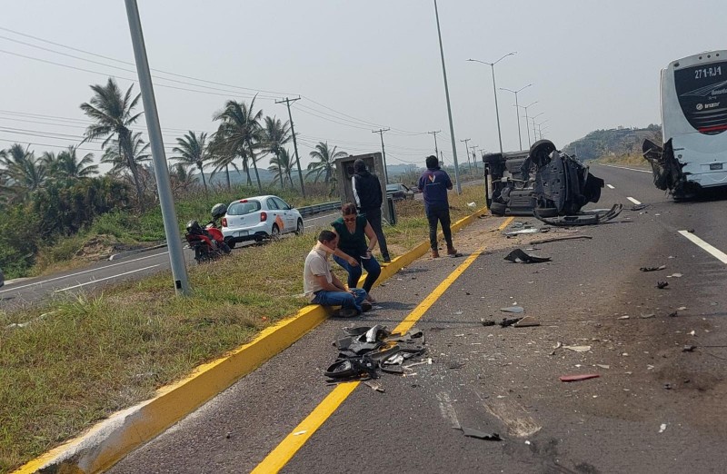 Una camioneta terminó volcada sobre el bulevar Riviera Veracruzana, en la zona de Antón Lizardo, luego de impactarse contra un autobús de turismo durante el mediodía de este sábado 7 de marzo.