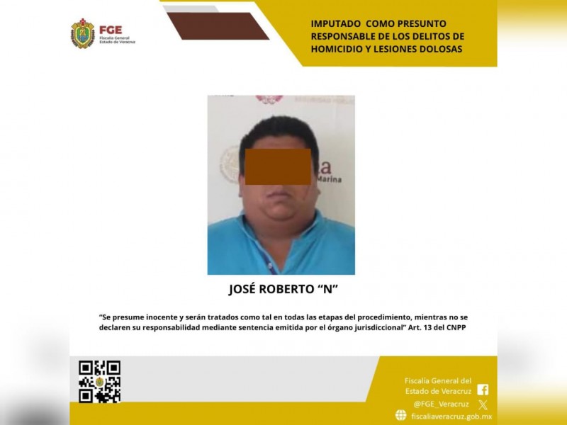 La Fiscalía General del Estado, a través de la Fiscalía Regional Veracruz presentó ante el órgano jurisdiccional datos de prueba que permitieron la imputación de José Roberto “N” como presunto responsable de los delitos de homicidio y lesiones dolosas.