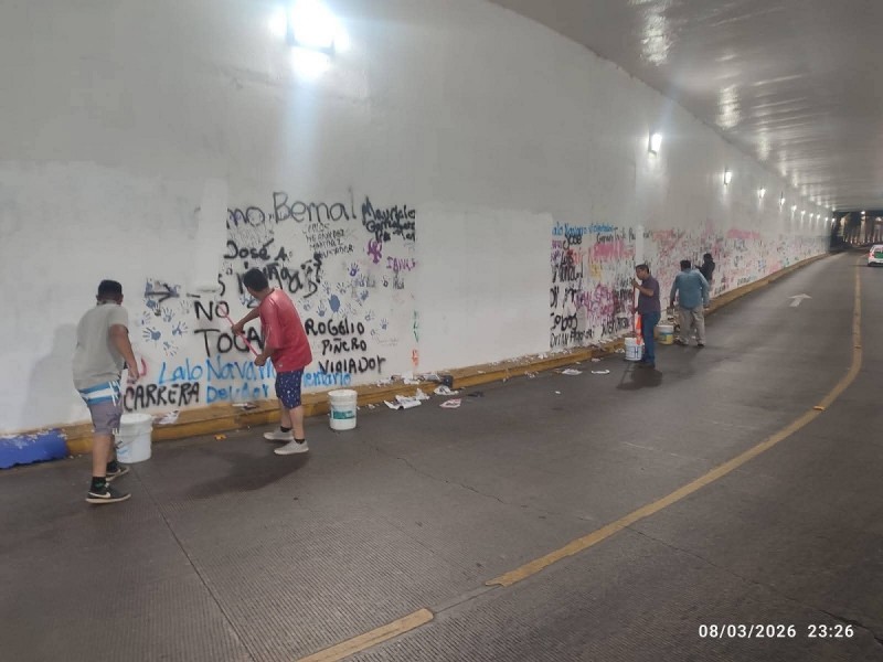 Las labores se concentraron principalmente en el Palacio de Gobierno y en el viaducto cercano al centro de la ciudad, donde trabajadores realizaron el borrado de consignas y rayones plasmados durante la protesta.