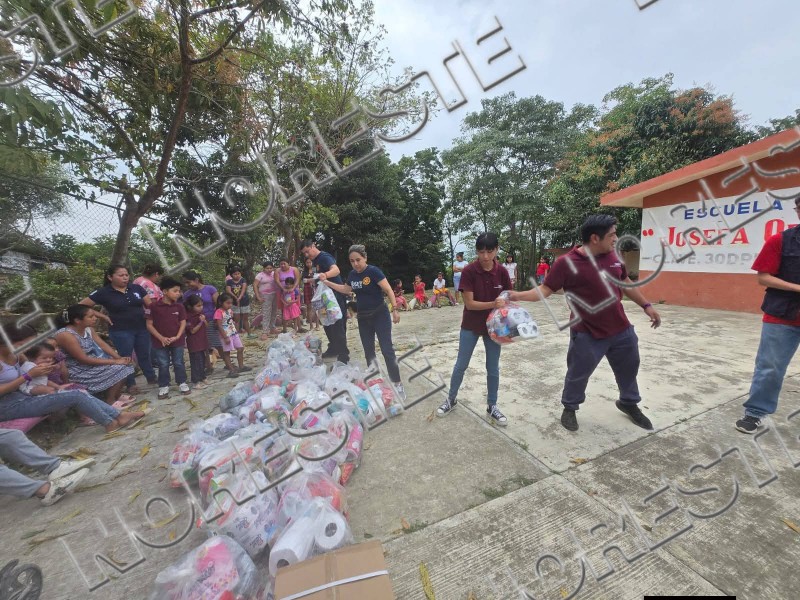 Estudiantes de la Escuela Primaria Josefa Ortiz de Domínguez y del Jardín de Niños CONAFE, ubicados en la comunidad de Cerro del Mesón, recibieron despensas y kits de limpieza como parte de una jornada de apoyo impulsada por integrantes de Rotaract Poza Rica.