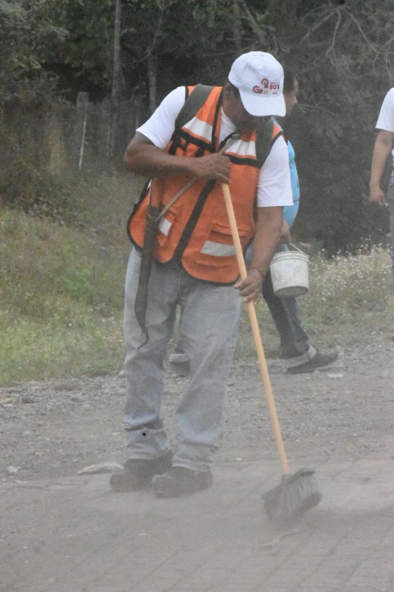 Las acciones comenzaron en la entrada principal del municipio, donde cuadrillas de trabajadores realizaron labores de barrido, retiro de ramas, lavado y descacharrización, con el propósito de mantener en buenas condiciones este acceso al municipio.