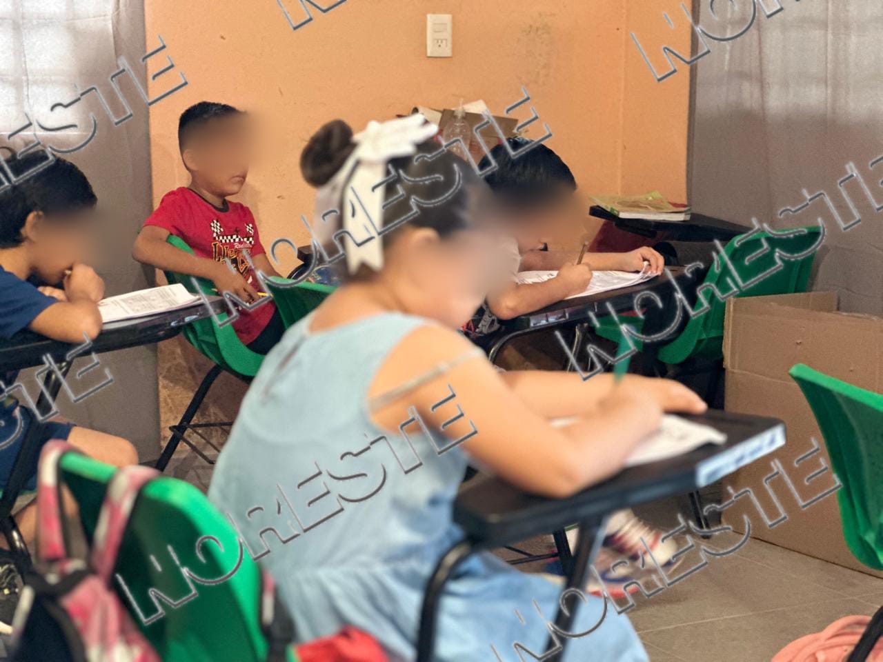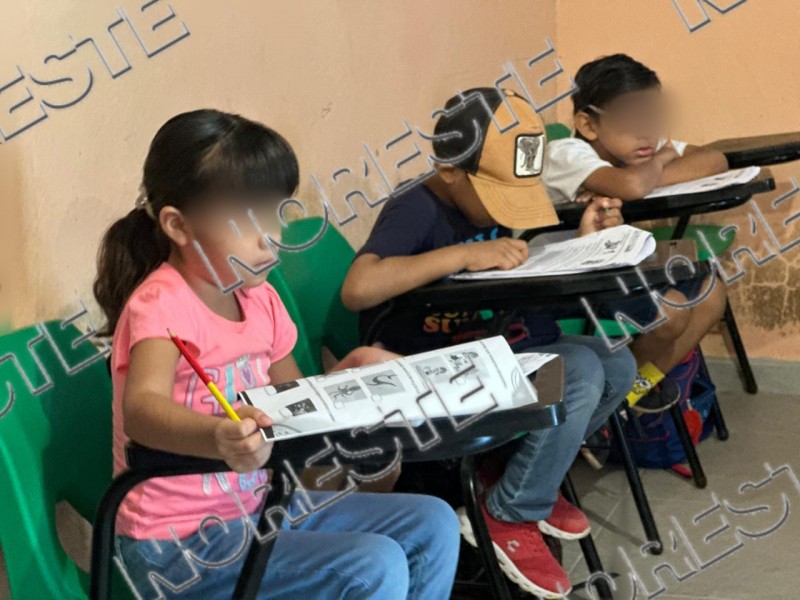 Ante la falta de espacios, algunos grupos reciben clases en viviendas adaptadas como aulas. En uno de los casos, padres de familia cooperan para pagar la renta de una habitación donde se imparten las lecciones, mientras que otro grupo continúa con actividades en línea.