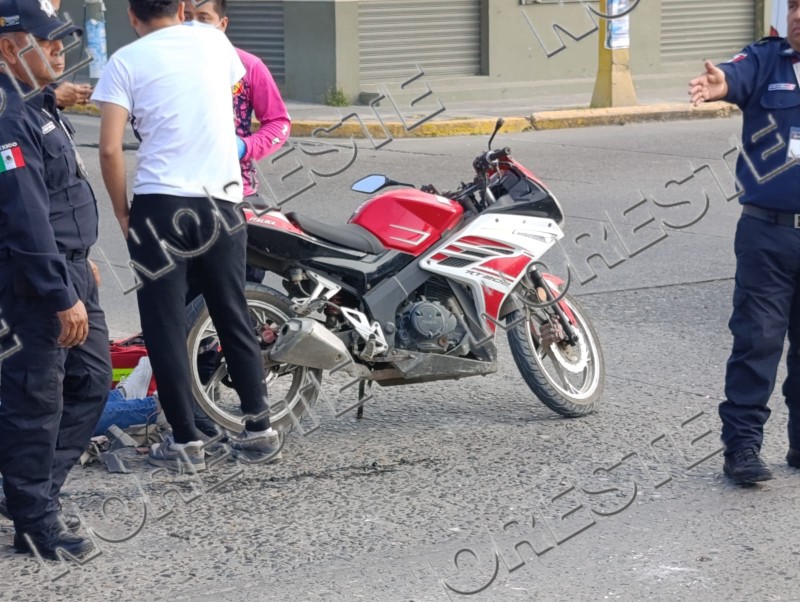 Tras el impacto, la unidad ligera perdió estabilidad y sus ocupantes terminaron sobre el pavimento. Como consecuencia del accidente resultó lesionada Karen N., de 21 años, quien viajaba como acompañante en la motocicleta y tiene su domicilio en la colonia Colinas del Sol.
