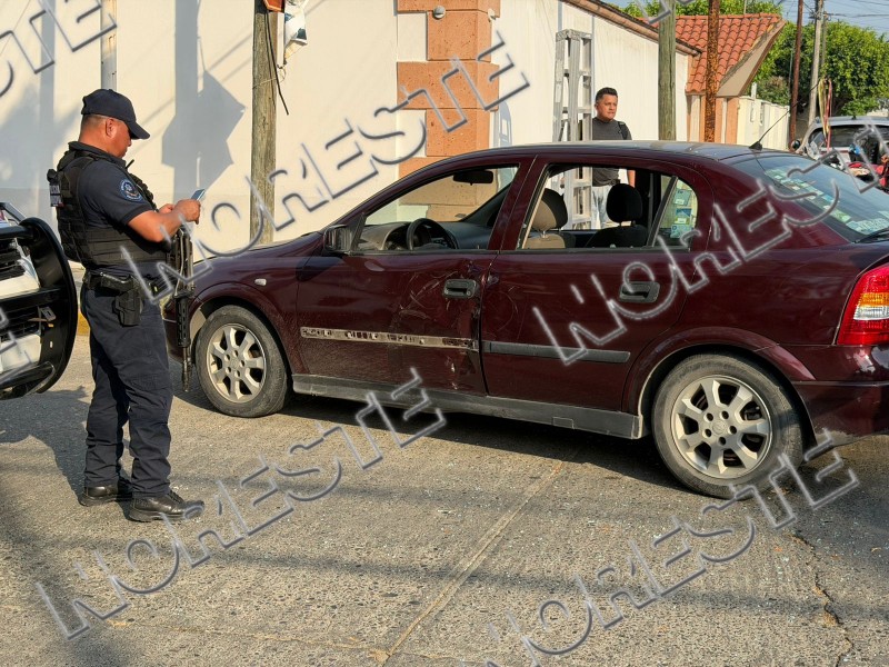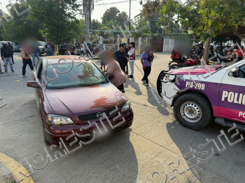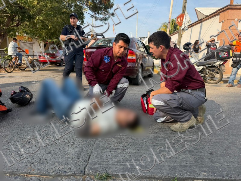 Un motociclista resultó lesionado luego de ser impactado por un vehículo Chevrolet color vino que no respetó el señalamiento de alto en la colonia Cazones.